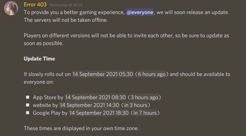 The PUBG Mobile 1.6 update started rolling out on 14 September 2021 at 5:30 am IST (GMT 5:30). According to the official notice, it should be available to users by:
