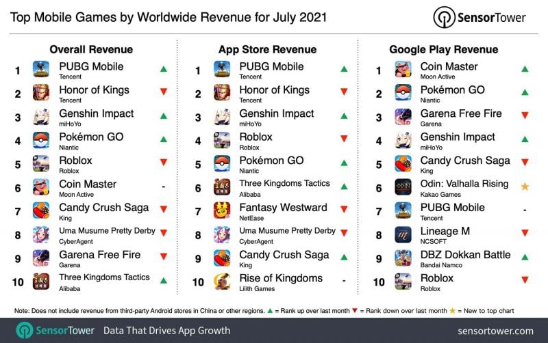 Ten of the most grossing mobile games of July 2021