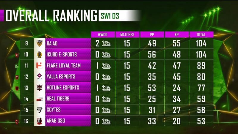 At the end of the first super weekend, Falcon Esports maintained their pole position on the points table with 196 points and 81 kills. Following them, in second place, was Zombies Esports, who gained three places and had 166 points and 95 kills.