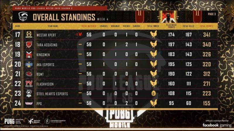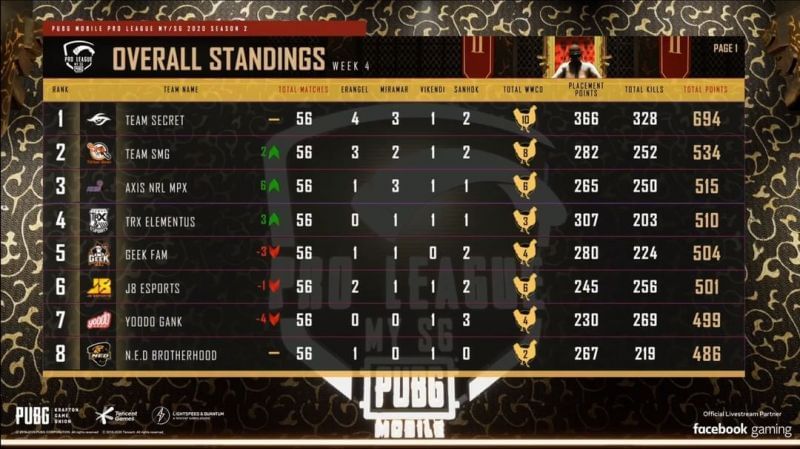 The League Stage of the PUBG Mobile Pro League Malaysia/Singapore will go on till 13th September. Team Secret leads the overall table with 694 points and 328 kills.