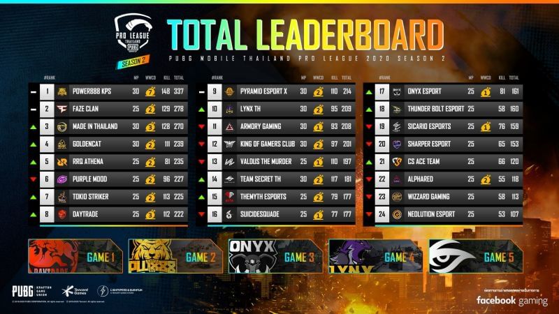 Overall standings after PMPL Season 2 Thailand Week 3 Day 2