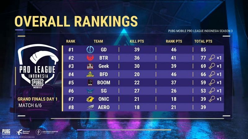 The sixth and final match of the day was won by Bigetron RA with 12 kills, while Genesis Dogma secured second place with 13 frags. PUBG Mobile star Zuxxy was the MVP with five kills.