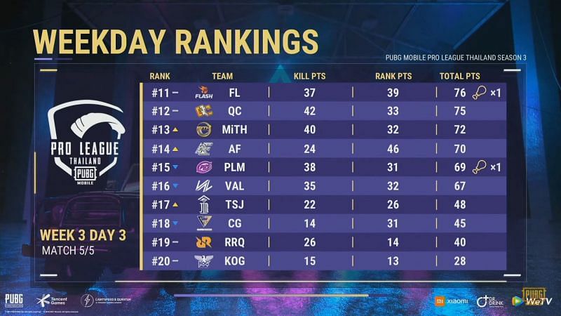 PMPL Season 3 Thailand week 3 day 3 overall standings: