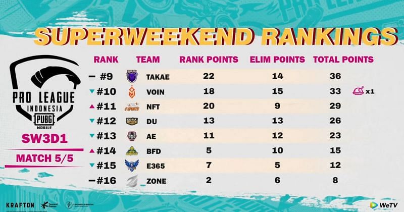 PMPL Indonesia Season 4 Super Weekend 3 Day 1: Match standings