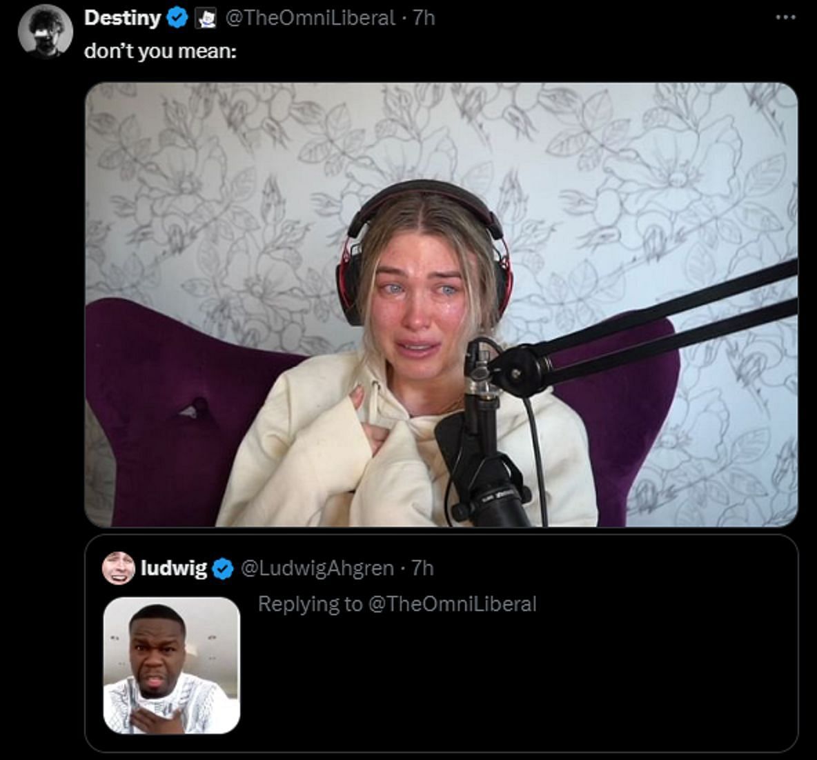 Destiny waging a war of words with other creators isn't the most surprising thing. However, not many would have expected him to be feuding with Ludwig. After Steven made the caustic post in response to the viewer's comments on Ludwig, the latter replied with the popular 50 Cent meme.
