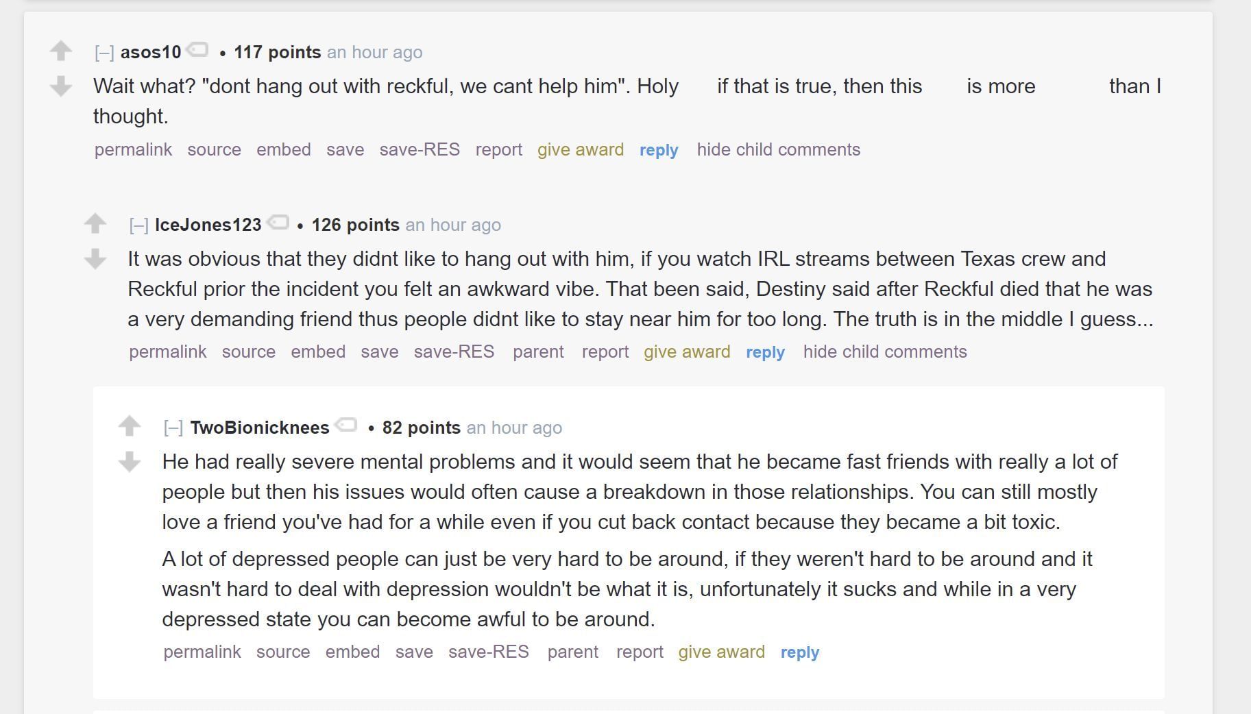 "It's the same for Reckful, too. Like everyone said, don't hang out with Reckful, we can't help him, blah, blah, blah, blah."