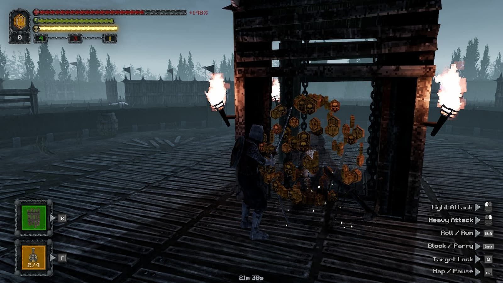 In sticking to its Souls-coded weight of combat, Tyrant's Realm fully sacrifices the floaty fast-paced action of ye olde Nightmare Creatures. It would have been a perfectly fine thing, except this game follows the wrong lesson. Its version of attack commitment quite literally gatekeeps your other controls from coming online.