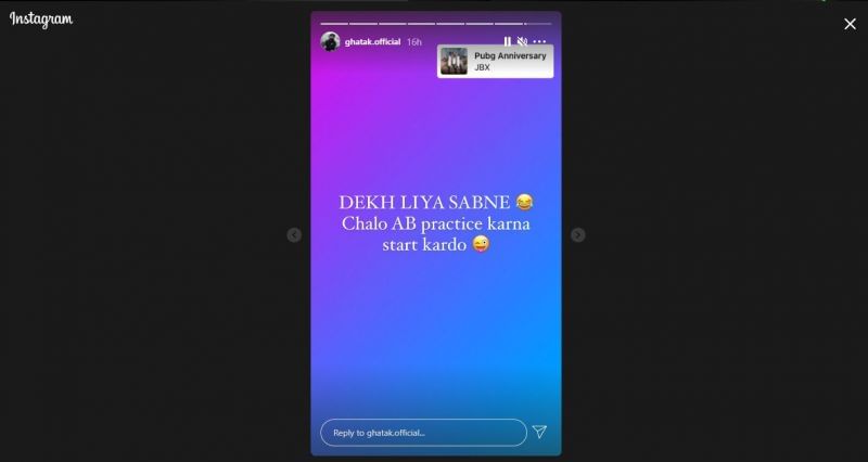 Meanwhile, Ghatak, another professional PUBG Mobile player, also uploaded an Instagram story that stated: