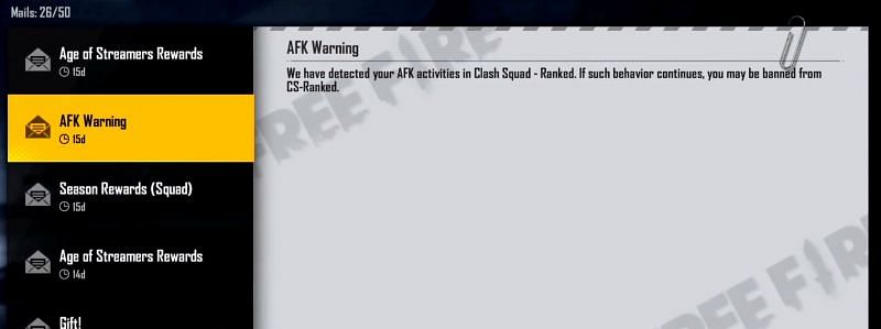 A lot of players in Free Fire Rampage have received the AFK Warning with the message 'We have detected your AFK activities in Clash Squad-Ranked. If such behaviour continues, you may be banned from the CS-Ranked.'
