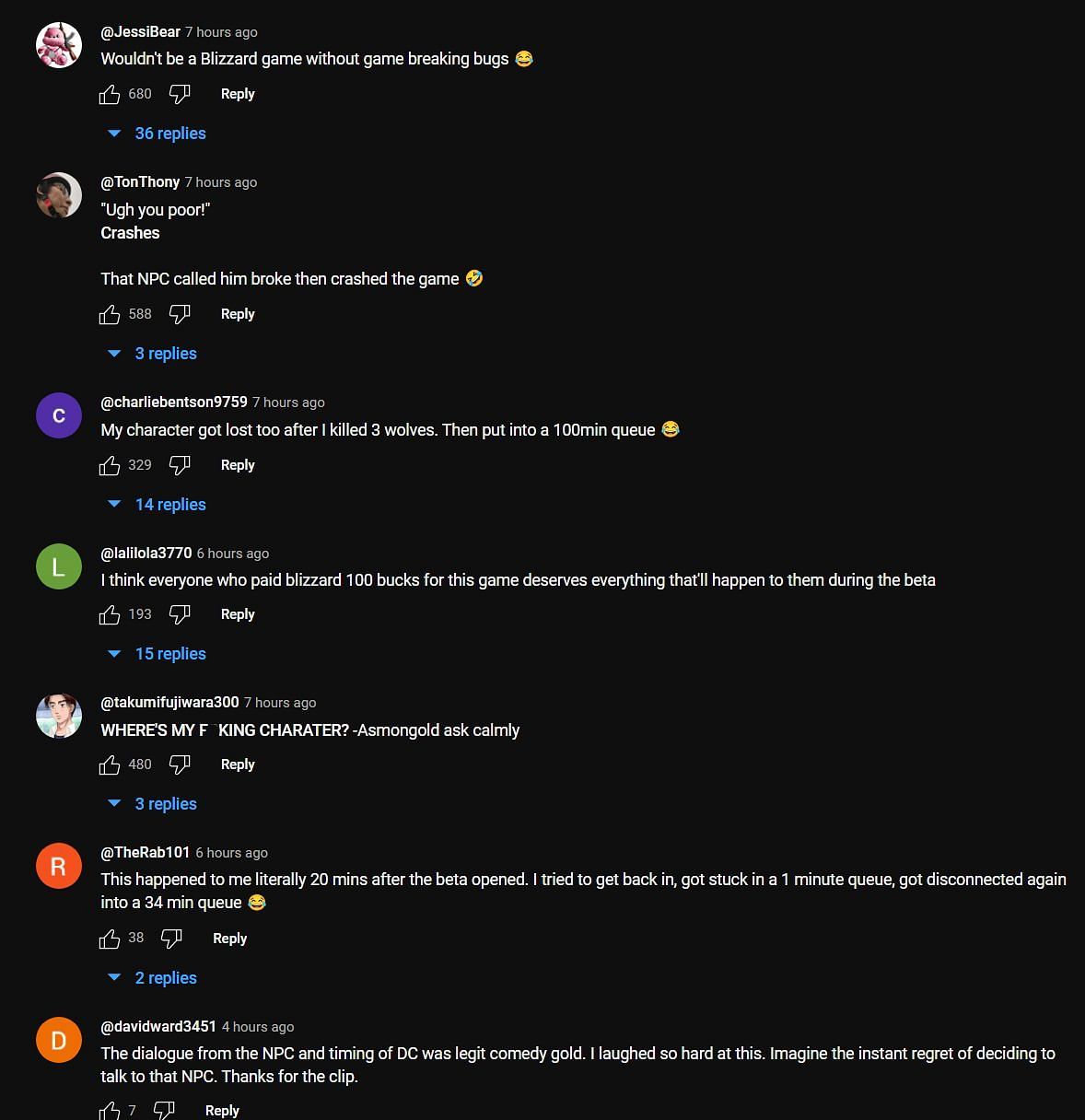 Here are some comments from the clip shared on YouTube. Most of them made fun of Blizzard, the developers behind Diablo 4, for a bug that could potentially wipe out entire character save files from the game.