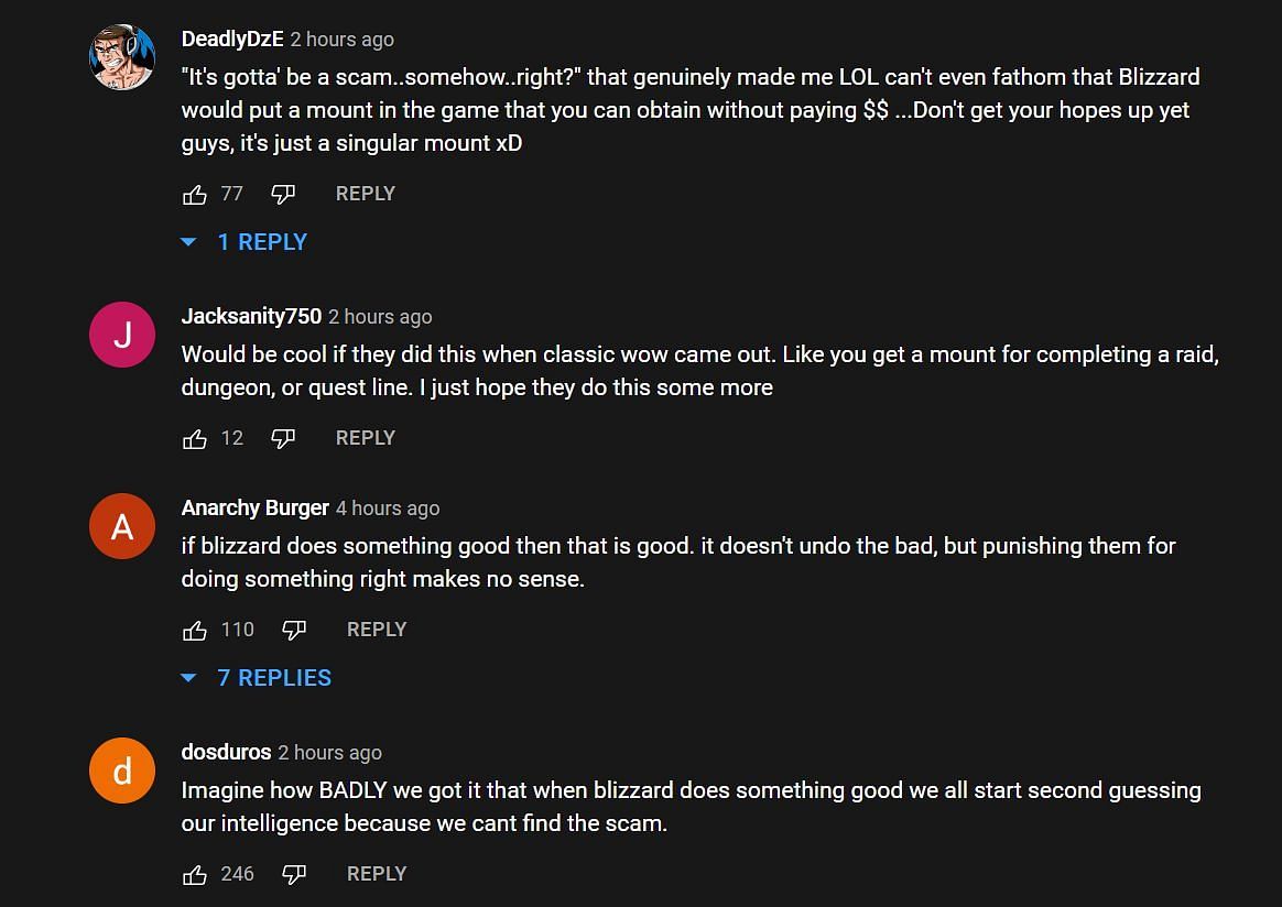After realizing that the mount could be obtained quite fairly, Asmongold's audience was quite appreciative of Blizzard.