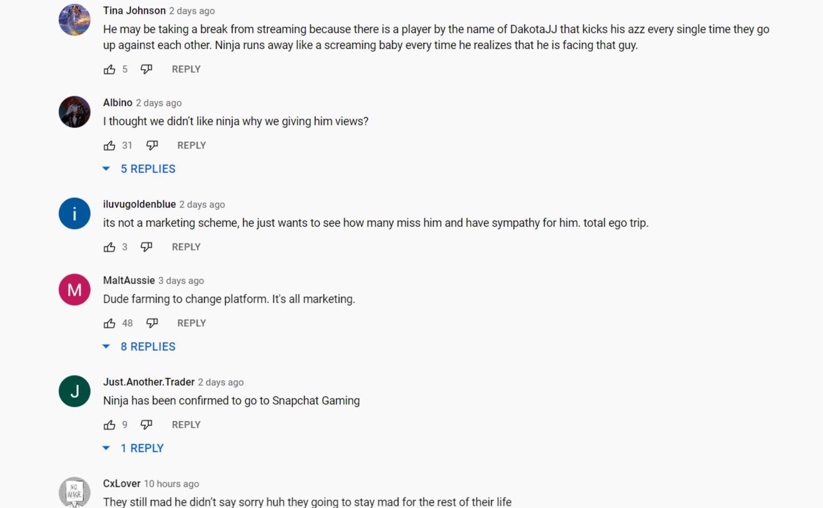 Judging by the responses, most fans feel that Ninja's mysterious social media ban is nothing more than a clever marketing strategy; however, there are some who wonder if he might be making the ultimate switch to YouTube in the coming days.