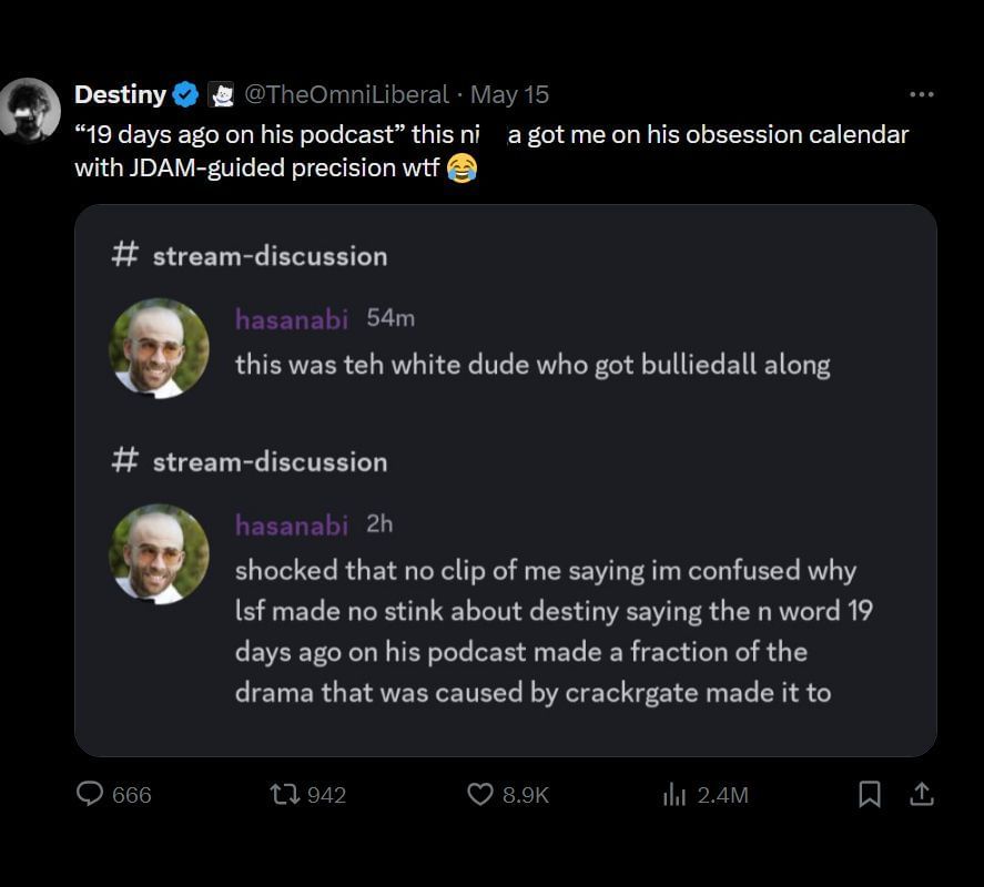 For those unaware, Destiny is considered a controversial figure in the streaming world. He streams on Kick and YouTube and has been feuding with HasanAbi for years due to their differences on socio-political issues. Both are political streamers.