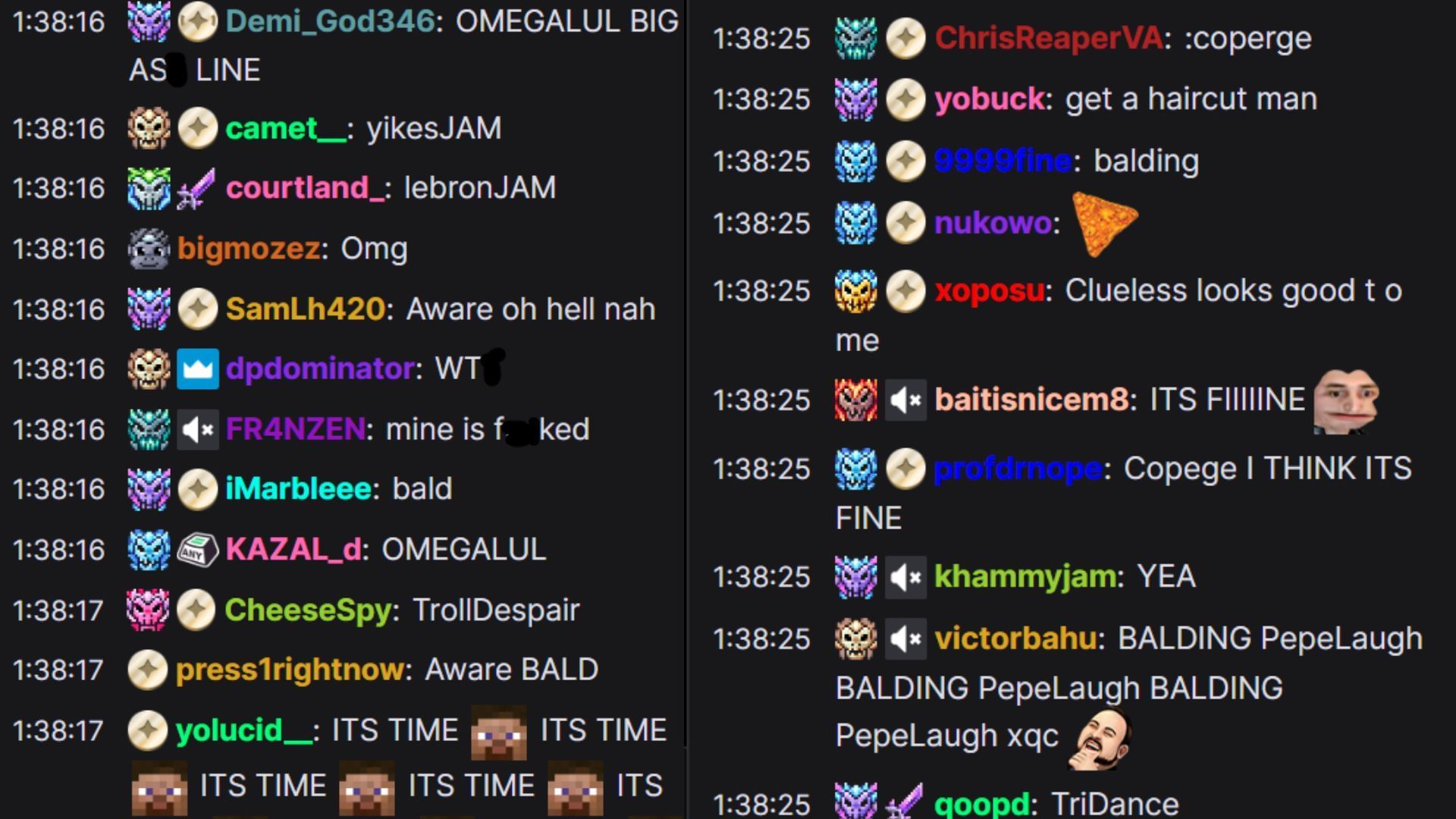 Last November, he even got a hairdresser to come in and cut his hair on stream. It pulled in over 100k viewers, and a clip titled "Hair dresser confirms xqc is not balding" went viral.