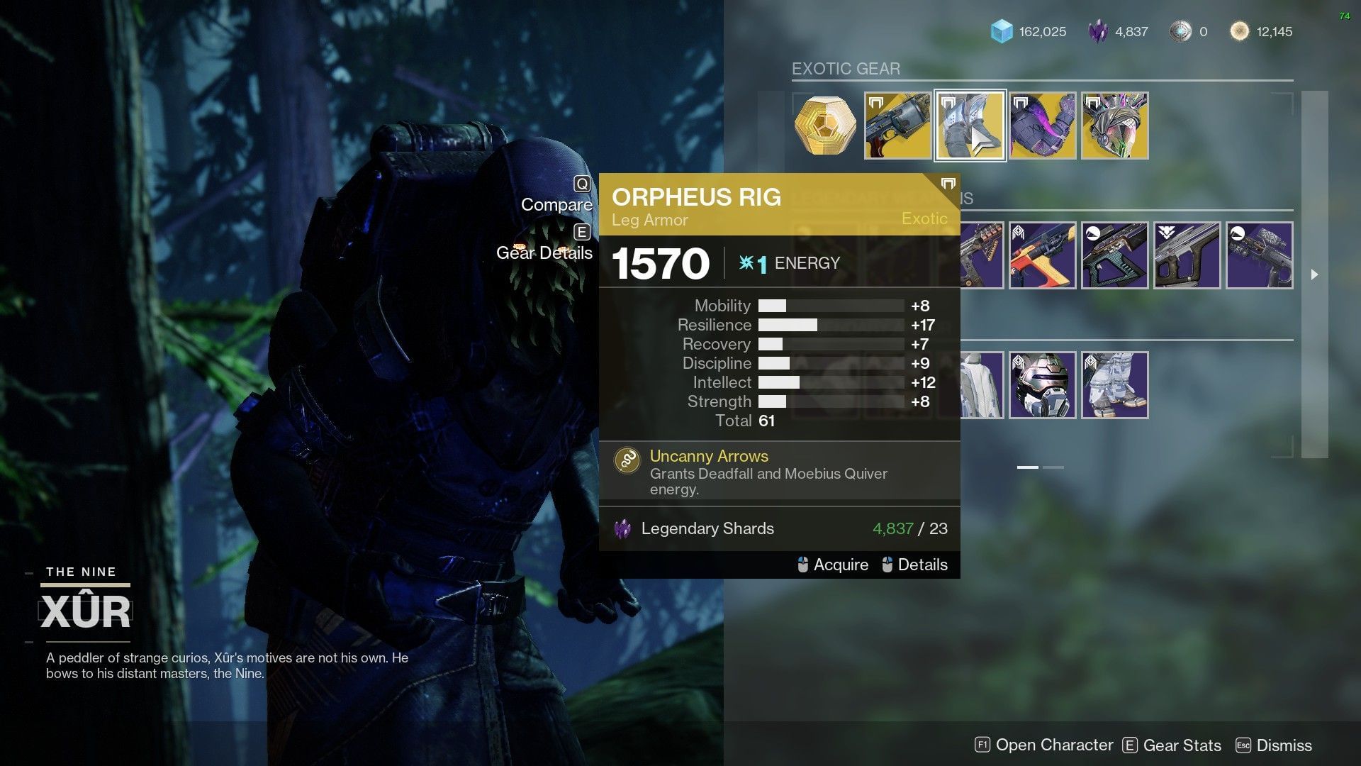 Before going into Legendary weapons, players should look at Xur's Exotic inventory. The following gears are available this week for a specific amount of currency: