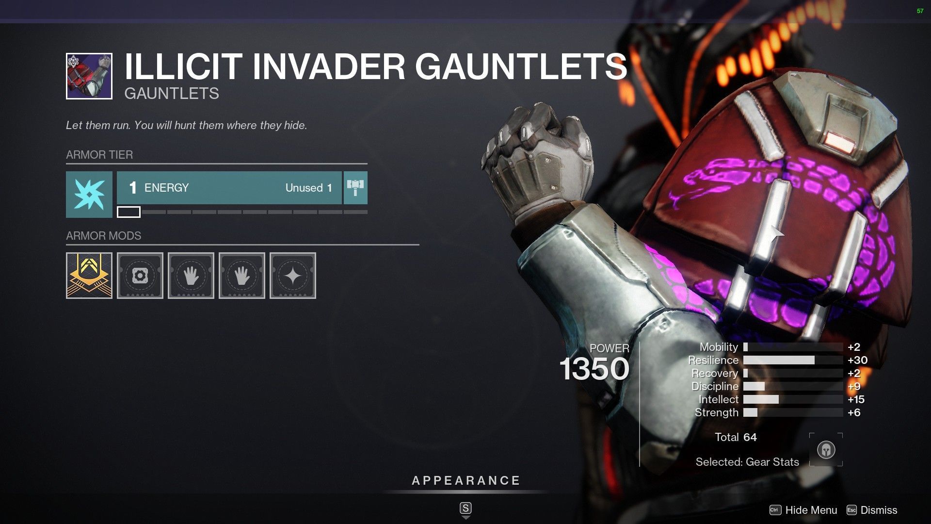 In the Legendary section, Xur has brought in one of the rarest armor sets from Gambit called the Illicit Invader set. Each set is a great pickup for players looking for rare transmogs, as well as those looking for decent spikes in stats. Titan's Illicit gauntlet is getting sold with a massive 30 Resilience and Warlock's boot with 21 Intellect.