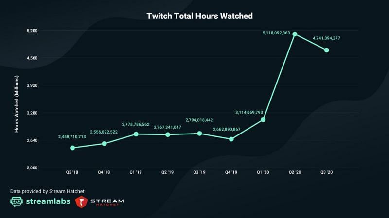 Audiences on Twitch watched around 4.74 billion hours of content, a decrease of 8% from the second quarter, which witnessed 5.12 billion in hours watched. Twitch, however, still holds the edge over YouTube Gaming and Facebook Gaming, who were at 1.68 and 1.04 billion in hours watched in Q3, respectively.