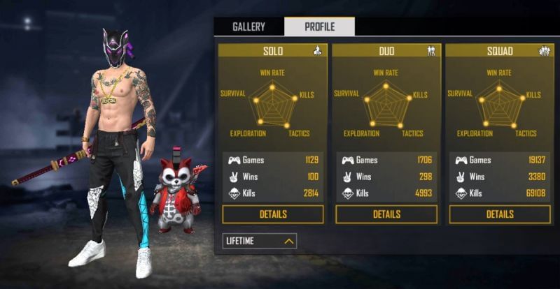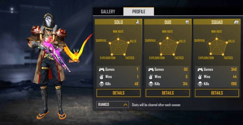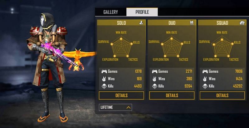 In the duo mode, he has played 50 games and has emerged victorious on 5 occasions, maintaining a win rate of 10%. He has also bagged 314 kills at a K/D ratio of 6.98.