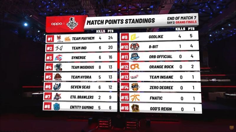 Match 7 Standings