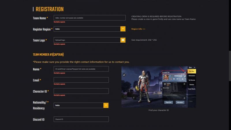 - Fill your crew details in the first three text fields, which include Team Name, Region, and Team Logo.