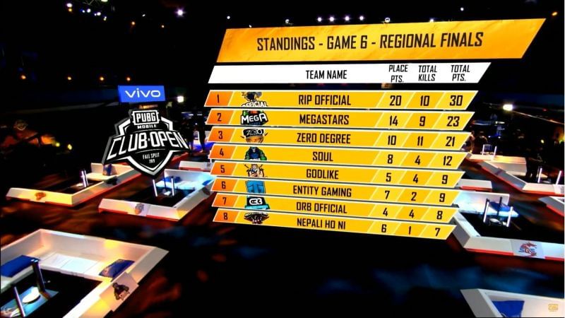 Although three members of Soul died early in the game, Regaltos came clutch for the team as he racked up 4 kills on his own. Zero Degree had a fantastic perform in game 6 as they secured the highest kills (11) in the game. However, it was RIP Offical who won the Chicken Dinner after they eliminated Megastars from the game.