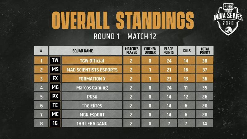 After the final match of the day 4, TGW Official acquired the #1 rank on the points table with 38 points and zero chicken dinner. They were followed by Mad Scientists Esports and Formation X with 37 and 36 points respectively.
