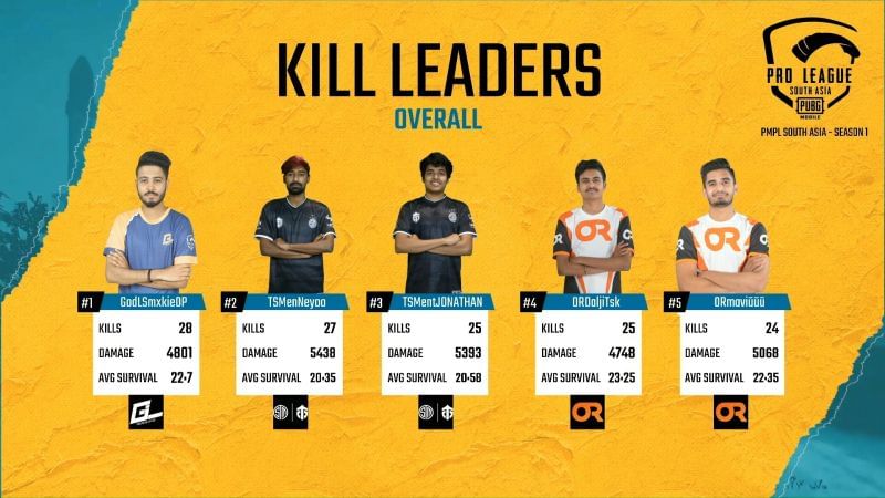 PMPL SA 2020 Week 1 Day 4 Overall Kill Leaders