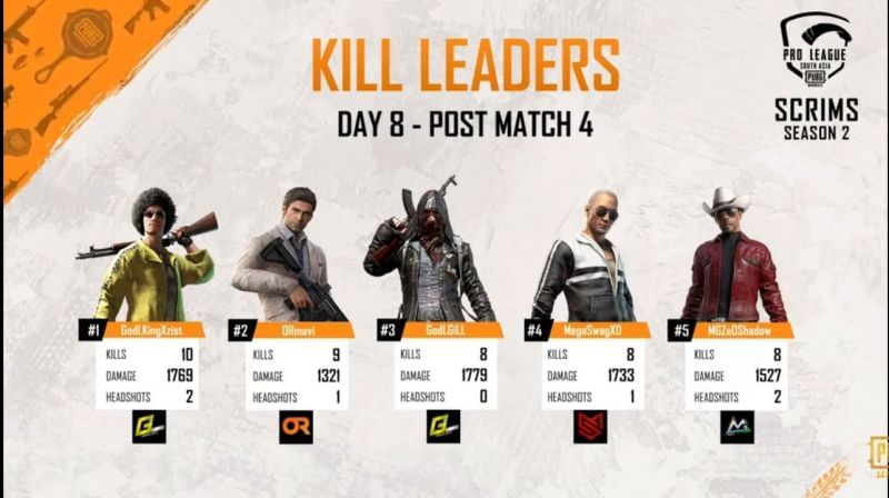 Top 5 fraggers after Day 8 of PMPL South Asia S2 scrims: