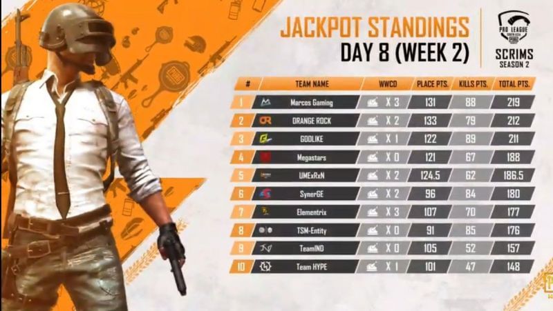 Xzistance from GodLike Esports was adjudged the MVP. He pocketed a total of 10 kills for his team and dealt more than 1700 damage. Marcos Gaming were followed by Orange Rock and GodLike, who secured second and third place respectively. Season 2 of the PMPL scrims has come to an end, with Marcos Gaming hitting the jackpot and taking home week 2's prize money.