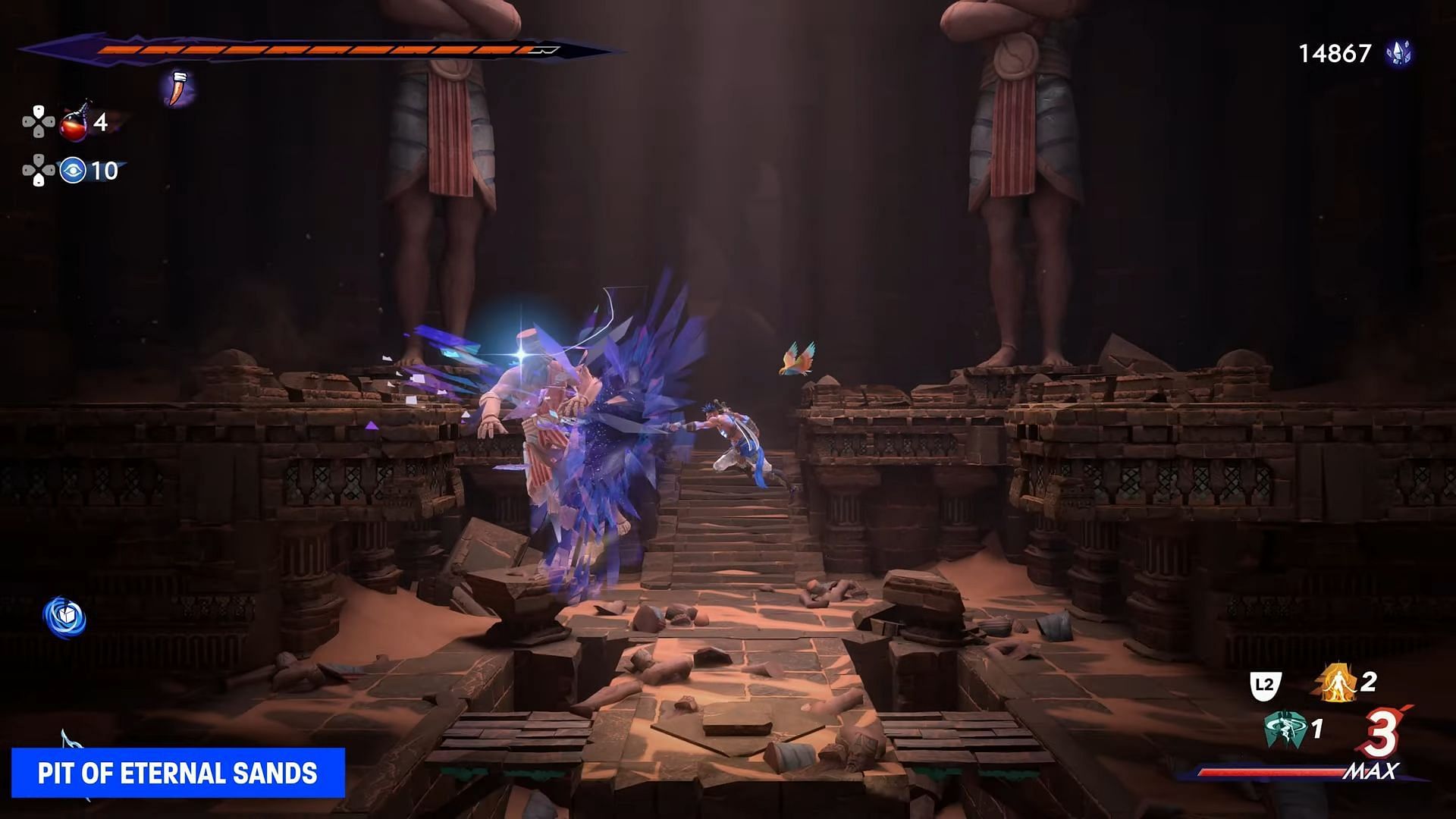 - How to unlock: Break the barrier below the teleport point to unlock a pathway. Head back to the Upper City and grab one of the attacking statues using your Dimensional Claw ability. Return to the Pit of Eternal Sands and drop the living statue inside the trap at the end of your previously unlocked path.