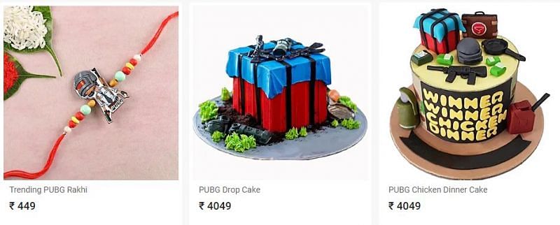 Price range (PUBG cakes): ₹999-₹4999