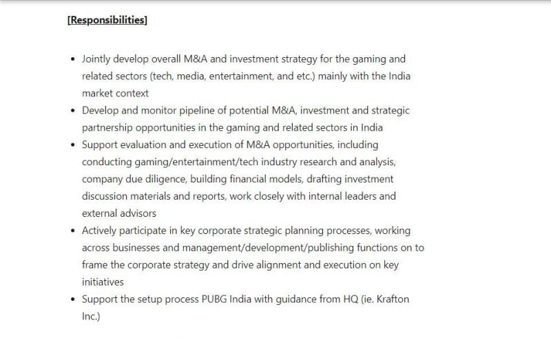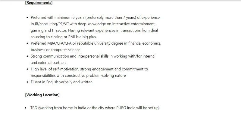 Earlier in October, PUBG Corporation put up a job posting on LinkedIn for ‘Corporate Development Division Manager - India’, someone who could support the setup process of PUBG India with guidance from HQ.