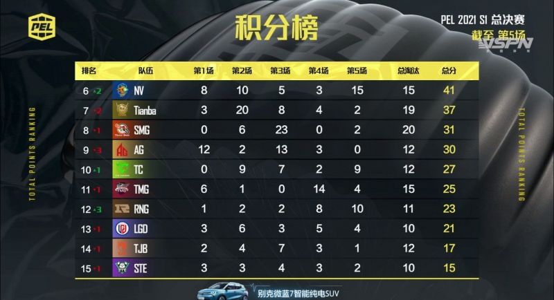 The fifth and final match again played on Erangel was won by Team Weibo with seven kills. However, Show Time went into beast mode to grab 12 kills and top the match table. Nova XQF grabbed third place with five eliminations.