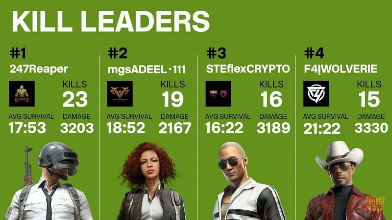 In the fourth and final match of the day, played on Erangel, Team F4 secured a chicken dinner with eighteen kills. Following them in second place was 247 Gaming, with three kills to its name. The third place in the final match went to Portal Esports, who had six kills.