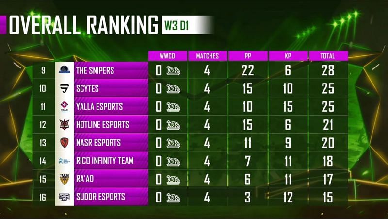 Following them in second place was FalconsEsport with 50 points and 21 kills. The third place at the end of the day was captured by iKurd Esports with 47 points and 16 kills.