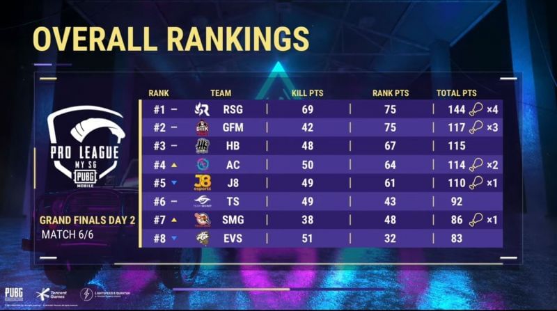 The second day of the finals of the PUBG Mobile Pro League (PMPL): Malaysia and Singapore Season 3 came to an end today. After an enthralling day filled with action, RSG Malaysia emerged as the table toppers with 144 points and 69 kills. Following them in second place was Geek Fam with 117 points and 42 kills. The third place at the end of the day went to HomeBois, who secured 115 points and 48 kills.