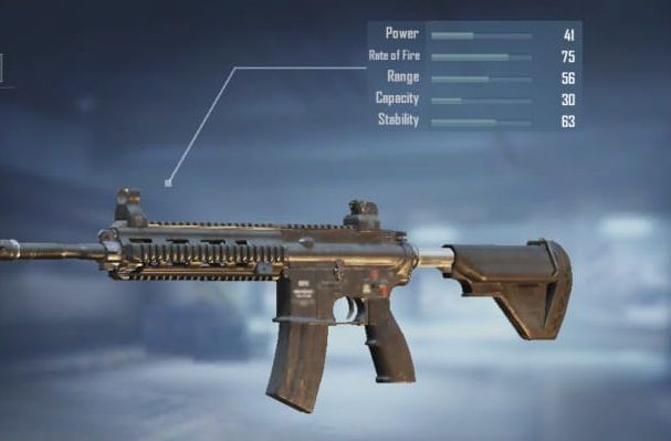 M416 is again one of the most commonly used guns. It not only has five attachment slots but is also a bit stable in medium-range flights. It uses the 5.56 ammunition. It has an effective range of 56 and a damage of 41.