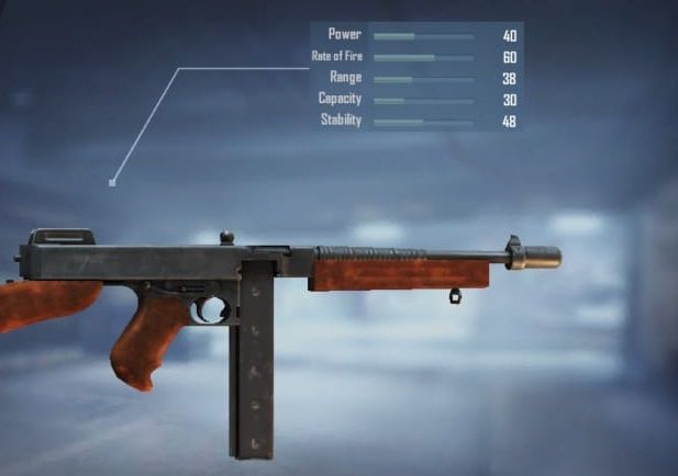 Thompson SMG popularly known as Tommy gun is by far one of the worst SMGs in PUBG Mobile, with a low fire rate and limited range. It has only 40 damage. The gun has an effective range of just 38.