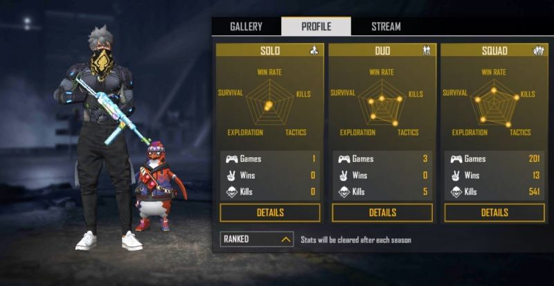 Raistar has played 201 squad games in the ongoing ranked season and has secured 13 victories, making his win rate 6.46%. He has eliminated 541 opponents at a K/D ratio of 2.88 in this mode.