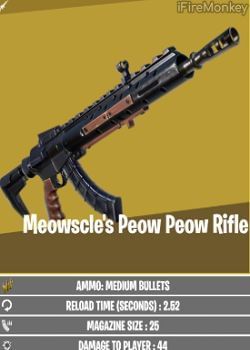 Obtained by defeating Meowscles at the box factory, this weapon is highly used in the Fortnite competitive scene as it is the easiest weapon to get from the list.