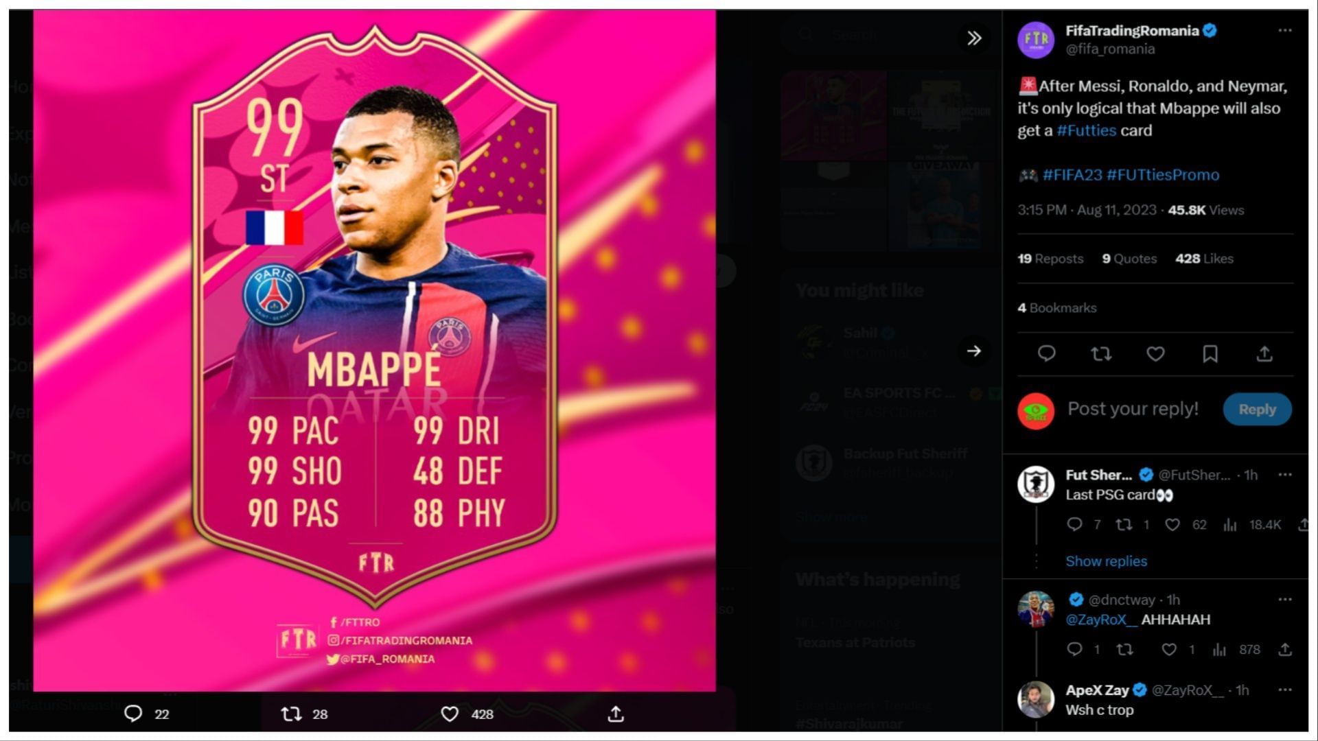 Not only is the mercurial French striker the featured cover star of FIFA 23, but he is also the most overpowered attacker in the game by far. His various special versions are regarded as some of the best items in the game and fetch extremely high prices, making the idea of a potential 99-rated Kylian Mbappe an extremely appealing proposition.