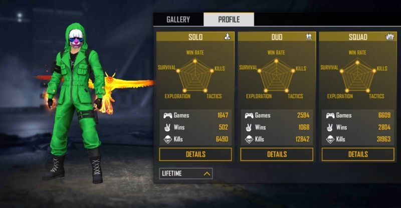 Lastly, the player has also won 502 of the 1647 solo matches that he has played for a win rate of 30.47%. He has bagged 6490 kills with a K/D ratio of 5.67.