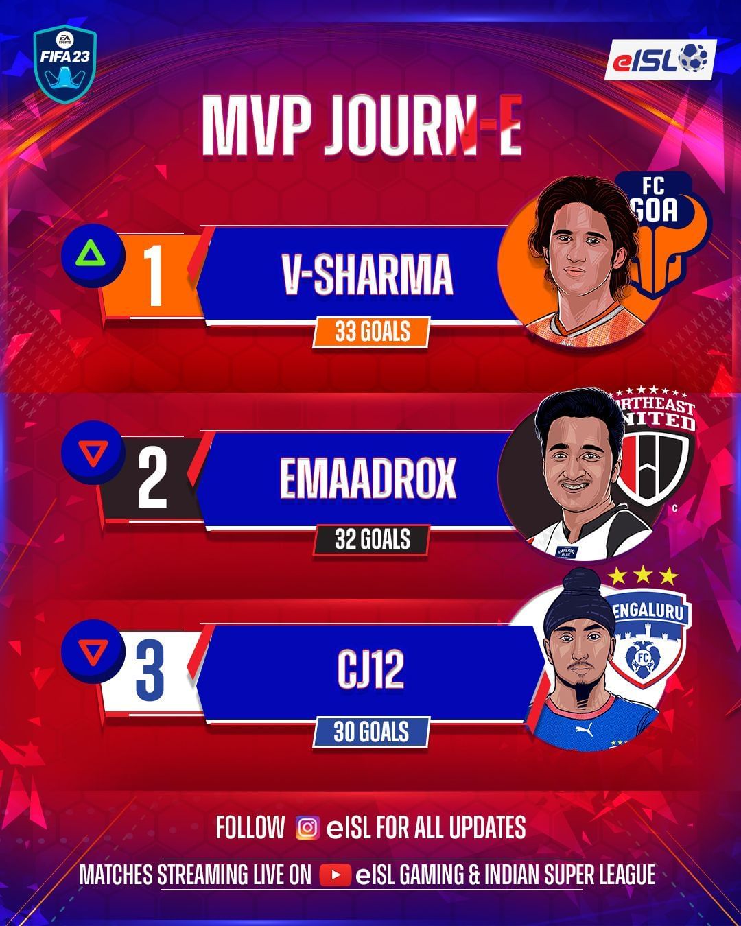 Emaad finished runner-up as far as the MVP race is concerned, having scored 32 goals in ten league matches. Charanjot slotted in 30 goals to wrap up the top three standings for the MVP of eISL Season 2.