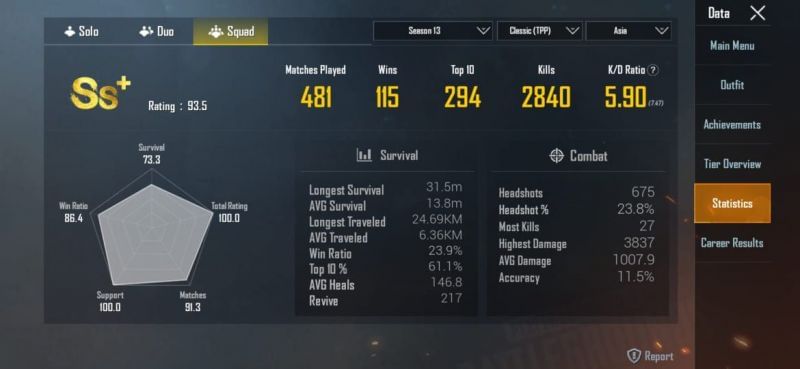 Here are his stats for Season 14 of PUBG Mobile: