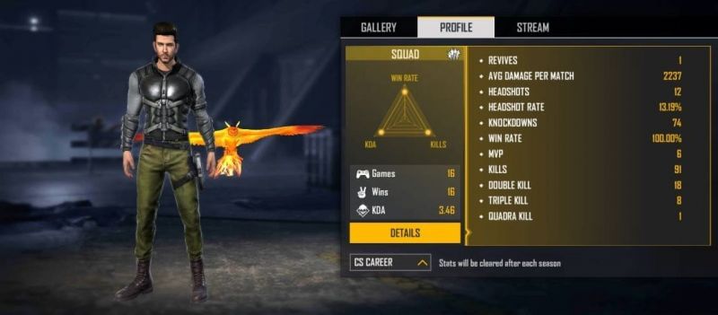 Scout has 16 played games in his Clash Squad career and won all of them. He has notched up 91 kills with a KDA of 3.46.
