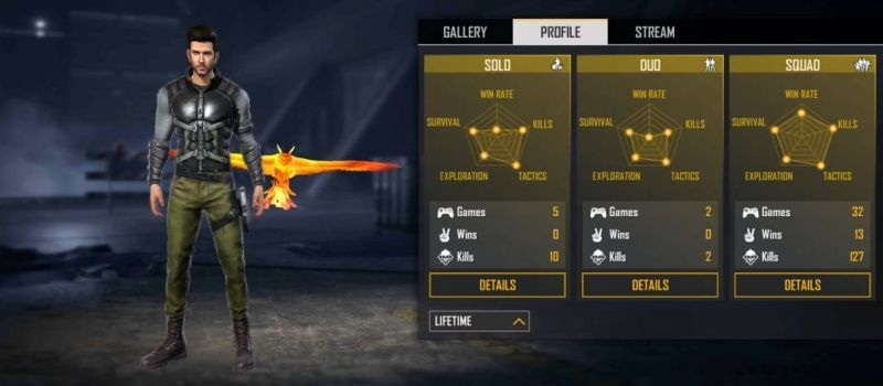 Scout has played a total of 32 games in the squad mode and triumphed in 13 of them with a win percentage of 40.62%. He has also notched up 127 kills at an impressive K/D ratio of 6.68.