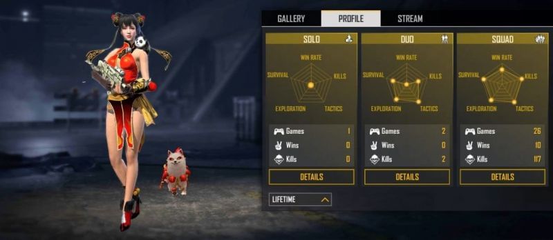 He has also played five solo games and registered ten kills with a decent K/D ratio of 2. However, he is yet to win a solo game.