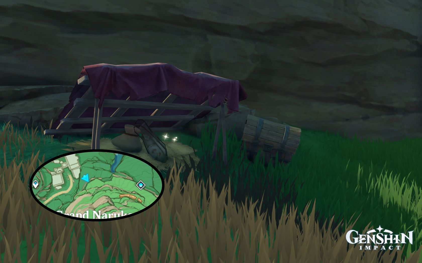 Genshin Impact players must then return to Gendou Ringo. She won't be there, but they can still obtain an item known as A Note Left By Someone. They can read it in the inventory and head southeast of the Court of Flowing Sand Domain (north of the Grand Narukami Shrine).