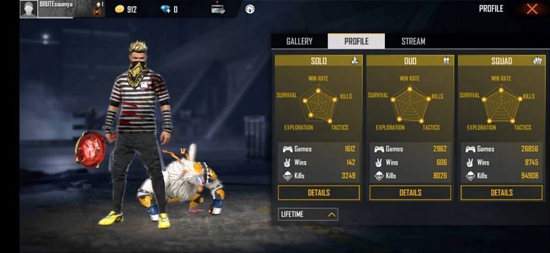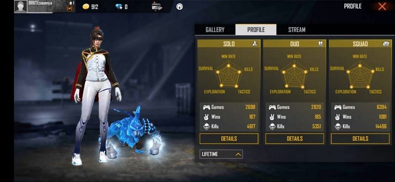 Helping Gamer has also played 2698 solo games and has triumphed in 167 of them, making his win rate 6.19%. He has accumulated 4617 kills at a K/D ratio of 1.82 in this mode.