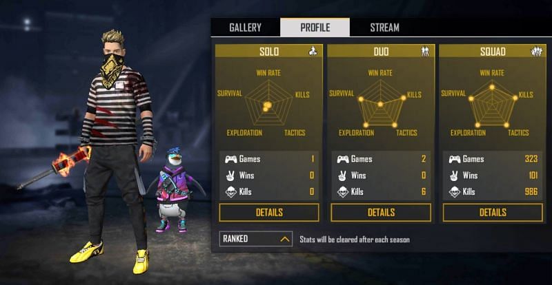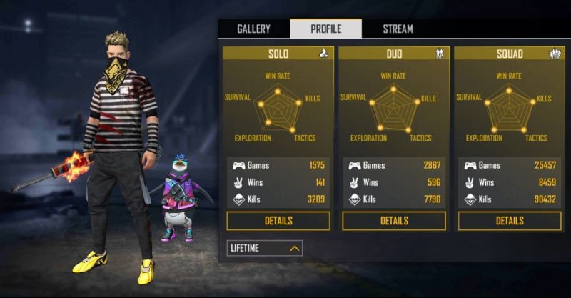 In the solo mode, the YouTuber has bagged 141 wins in 1575 matches with a win percentage of 8.95%. He has 3209 kills to his name for a K/D ratio of 2.24.